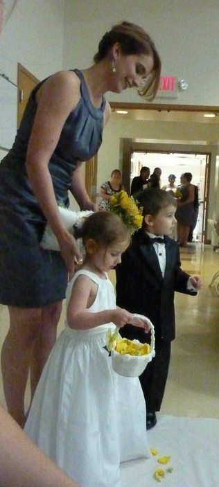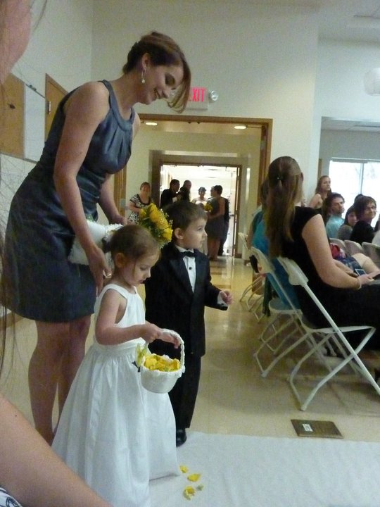 I expected them to not want to go down the aisle...I did not expect them to fight for the rights to throwing the flowers all down the aisle. It ended in MissE dumping her basket rather than continuing to have to share in the flower throwing duties with her brother