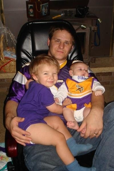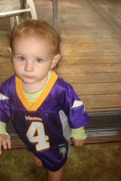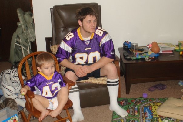 I am a girl who very much likes football. Really. My whole little family could be a walking Viking commercial. (In looking for pictures to post, I found I had more pictures of us in Viking gear than I thought and had a hard time choosing!) I like football, in general,so much I will (willingly) watch games that are not featuring “my team.” Now before the rest of my contemporaries throw me under the bus for “betraying  my kind,” know that it is a great bonding time with my hubbyman, one that the kids have gotten in on. Seriously, Big E would sit and watch a whole game with his daddy when he was too little to be watching tv! And they love “our” team so much that they have a hard time accepting that a) there are any other teams, b) anyone would cheer for any other team, and c) that their beloved Vikings could not win a game. (All Viking fans have this problem, I’m sure. Please, withhold your laughter. It’s bad enough to be a fan. Don’t kick us while we’re down.) I came across this video via the f’book this morning and laughed watching it…and I assure you, you will too. And if you’re not laughing, you are probably commiserating.