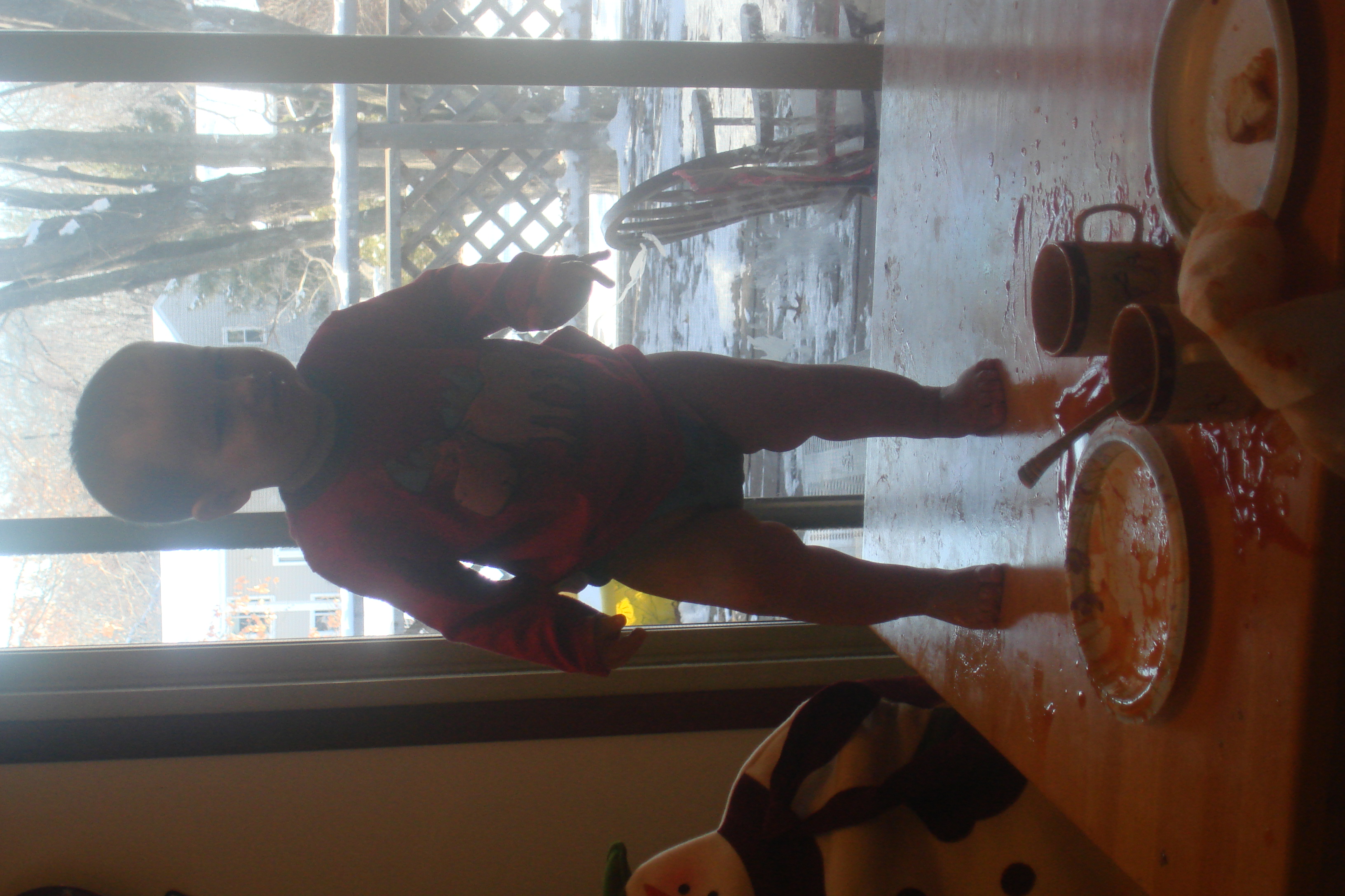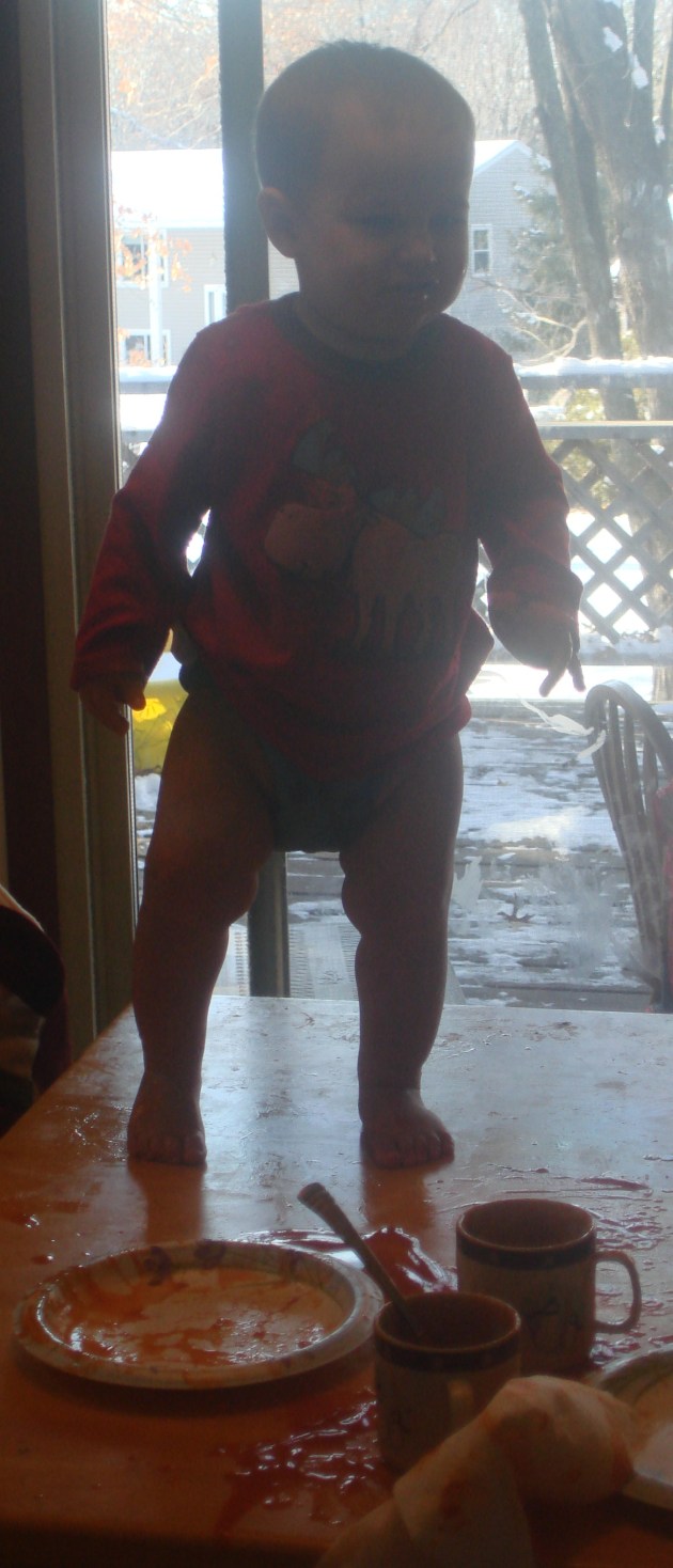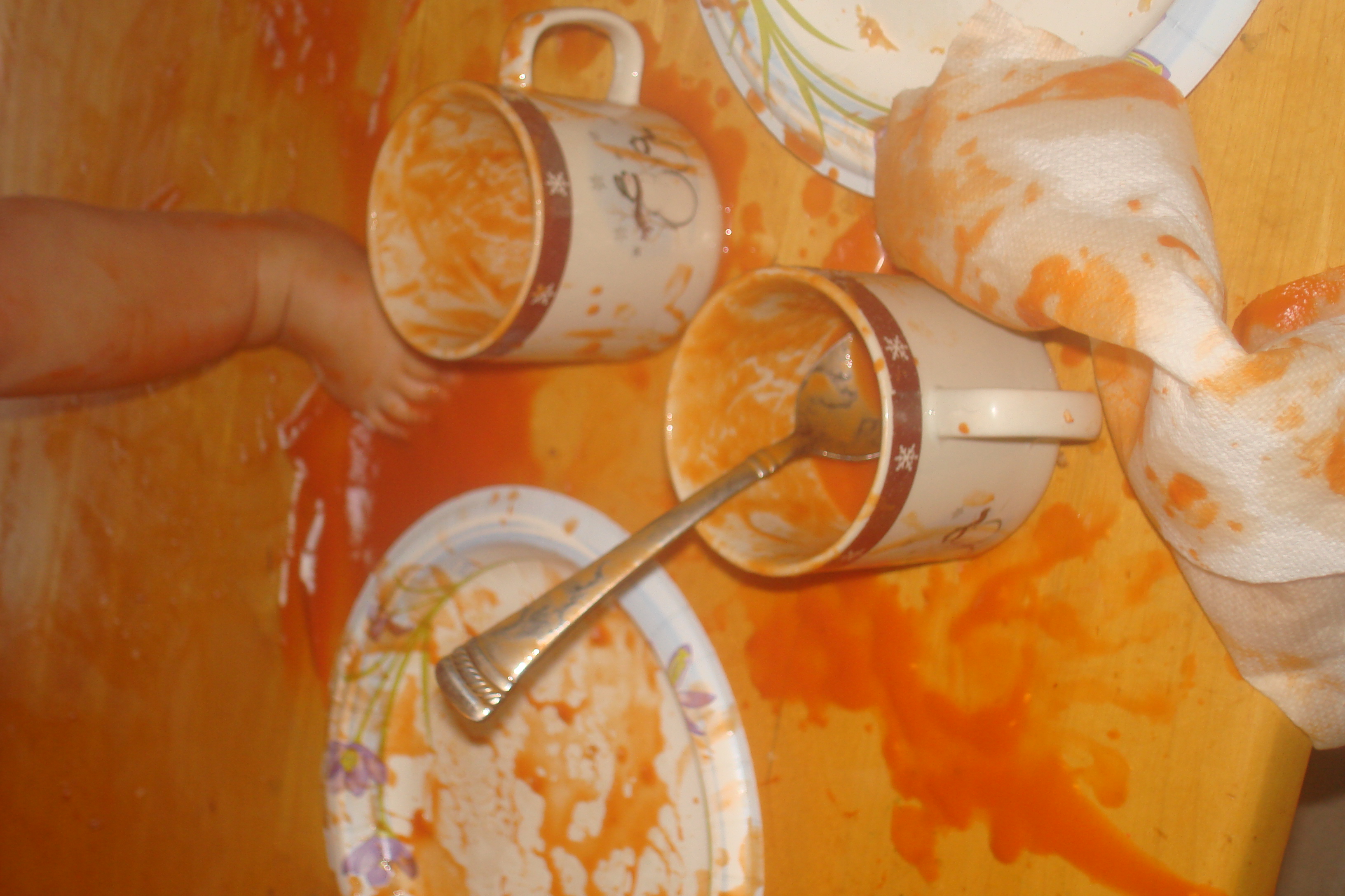 Today I’ve been feeling a little sub par, and it seemed like no matter how I tried to pretend I was feeling good and could be productive (we’ll have around 13 adults and 6 children under 5 in a week and a half in our home to celebrate Christmas!), every time I turned around, I’d run smack into something to remind me of how crappy I was feeling, along with unproductive. Like how I heard Littlest scamper down the stairs to join his siblings in play, and thought it would be a good time to throw some things in the laundry. By the time I’d switched out clothes from the dryer and the washer and reloaded the washer… I came upstairs to this pleasant surprise. We had girl cheese (as my MissE pronounces it) with tomato soup for lunch only minutes earlier, and the table had yet to be cleared. Littlest found a spoon and was feeding himself a slurp from every cup… unfortunately most of it ran down his front and onto the table, where he discovered he liked the feeling of it squishing between his toes. Needless to say, a bath ensued as he had tomato soup from head to toe and a plethora of places in between. And as this is just one example for the day (he also pulled over the Christmas tree…), these are all the words I care to say out loud. I hope you can understand, and maybe even sympathize. If you can babysit, that would even be better
