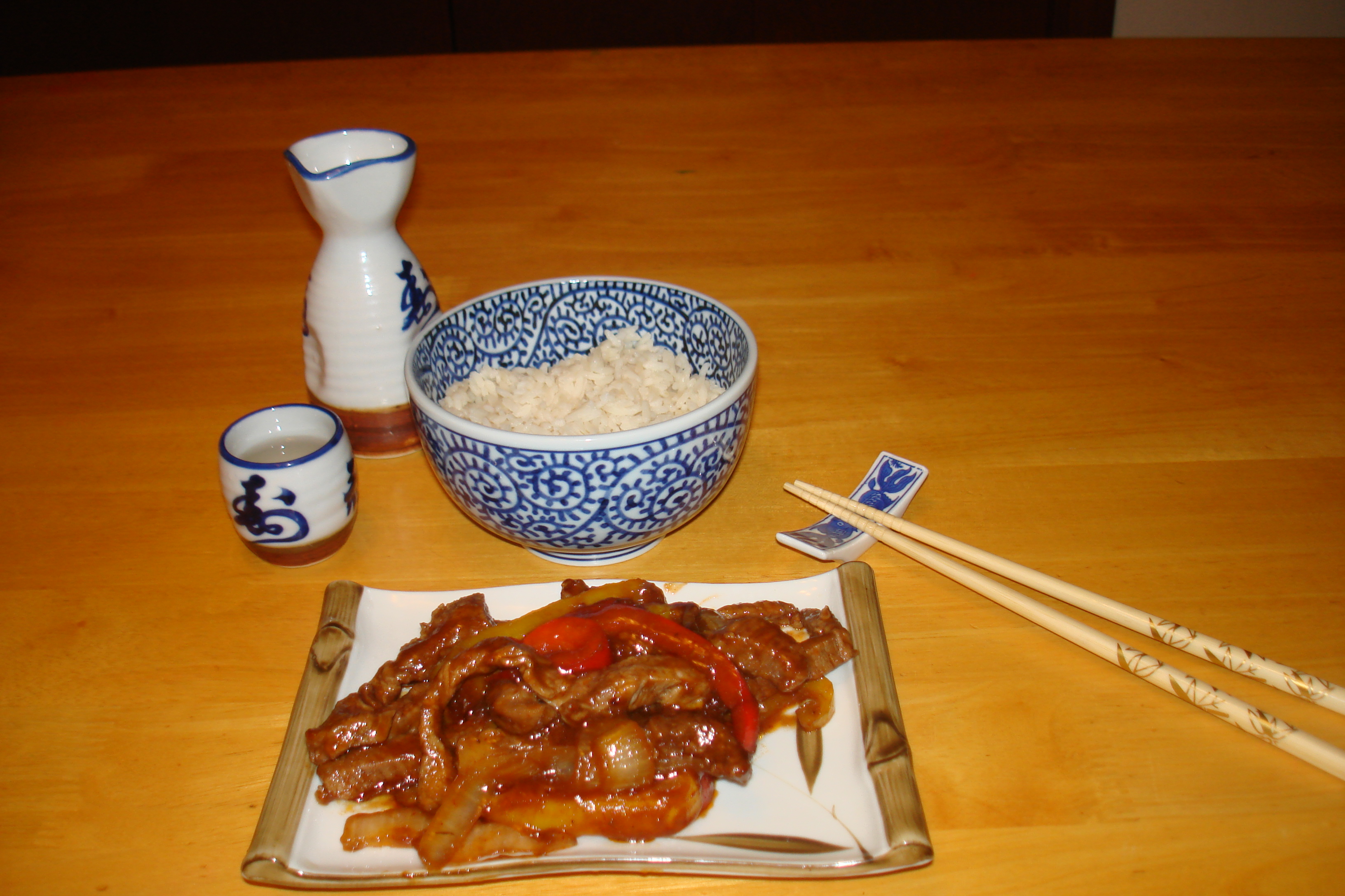 Back when hubby-man was also a military-man he did a deployment to Japan, where he fell in love with Korean bbq. When he came home he insisted on learning how to replicate it. And it was time well spent! This is another one of those meals that can look -and taste- like you spent a lot of time and money on it, but neither is true. And ooooh is it yummy! Hubby-man loves this recipe for crowd-feeding! I think he secretly loves that he makes it and therefore everyone oohs and aahhs over his culinary abilities.(I love that I’m not doing the cooking!) Plus, then we get to use all the fun things purchased in Japan! And I’m down for any reason to get out (and use) the Sake set! Something about the miniture scale of it all just makes me feel like a little girl at a tea party! I love it!